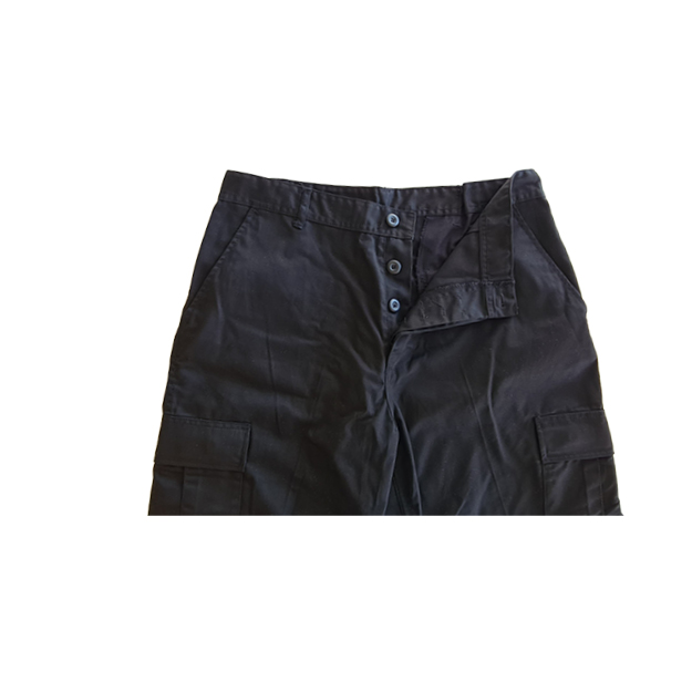 Kraftig arbetsbyxa med snedställda sidfickor, benfickor och bakfickor med ficklock stängda med knapp.