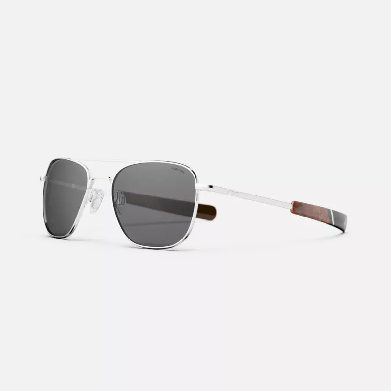 Aviator White gold är pläterad med 23 karat vitt guld och har en klassisk och tidlös design. Den klassiska pilotbågen med raka skalmar för att passa under hjälm eller headset.
