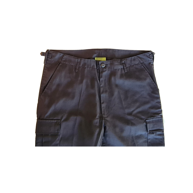 Slitstark arbetsbyxa med snedställda sidfickor, benfickor och bakfickor med ficklock stängda med knapp.
