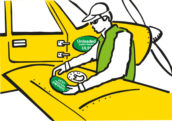UL91-klistermärke för uppmärkning av vinge och cistern. UL91 är en officiell blyfri standard som produceras enligt ASTM.