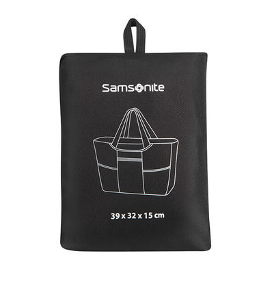 En praktisk ihopvikbar shoppingsväska som tar liten plats innan du behöver den. Väskan har ett stort fack och en liten ficka på sidan, båda med blixtlås.