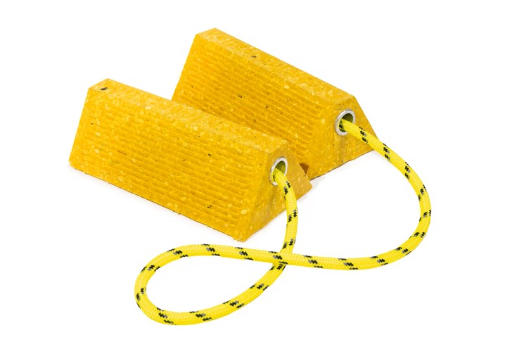 Stoppkloss som består av återvunnen polyuretan och som motstår ett tryck på 5 ton. Stoppklossen överensstämmer med IATA AHM462-standarden och är motståndskraftig mot flygbränsle, oljor och smörjmedel. Stoppklossen ruttnar och spricker inte.