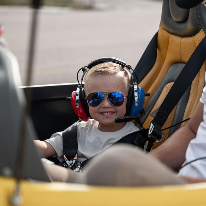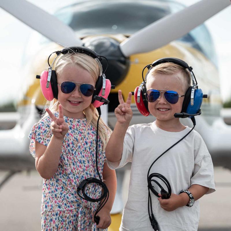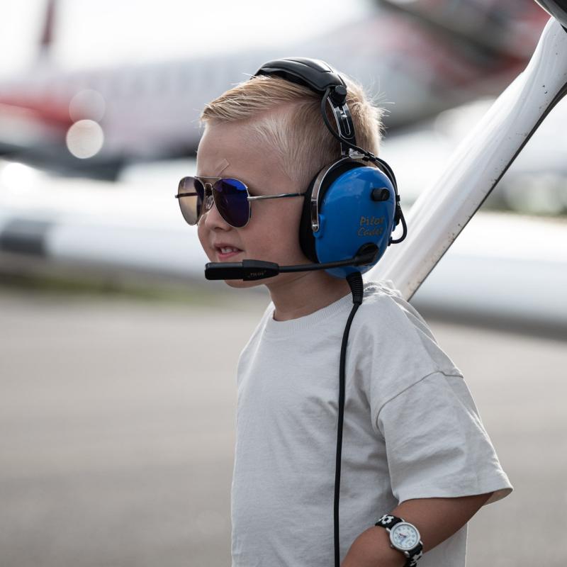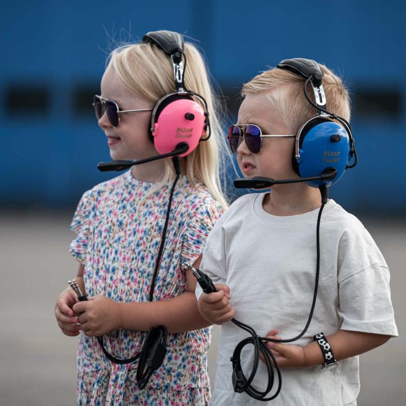 Pilot USA headset för barn, GA, blå&röd öronkåpor